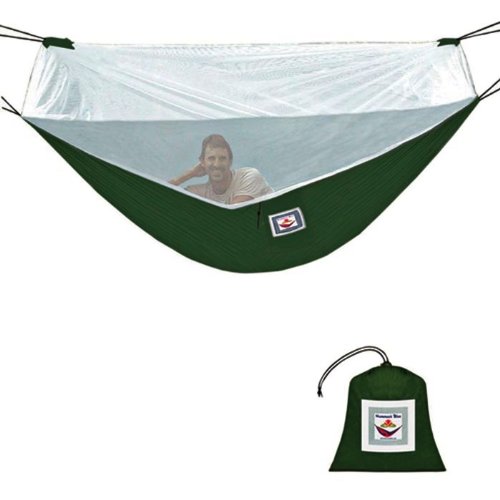 Mosquito Free Hammock Bliss combines high quality materials with exceptional comfort to create the ultimate pest free hammock experience. This incredible hammock has so much room it is significantly larger than a double size bed. It measures an amazing 57 inches x 118 inches. Mosquito Free Hammock Bliss is constructed of super strong 100% nylon parachute material which is both soft and breathable. The white mosquito netting is constructed of quality nylon and is attached to the entire length of the hammock. The mosquito netting is supported by 100 inches of cord that allows the net to hang above the sleeping area. The cord conveniently packs into its own pouch attached to the top of the net. Each hammock comes complete with 100 inches of 6mm super tough 100% nylon climbing rope sewn into each end so you have everything you need to attach the hammock easily just about anywhere. Mosquito Free Hammock Bliss conforms to your body so there are no pressure points or annoying rope marks. Enter the mosquito free zone by opening the durable YKK zippers and climb inside. We have provided inside and outside double zippers to make it a snap to zip yourself into and out of your bug free zone. The amazing thing is that all of this fits into a 9 x 10 inch ready to go anywhere stuff sack. The stuff sack is attached to the hammock so you can never lose it. When you are relaxing in the hammock you can use the attached stuff sack as a handy gear pouch. This hammock is completely reversible so when bugs are not a problem just flip it over and use it like a regular Hammock Bliss. Mosquito Free Hammock Bliss is strength tested to 400 pounds and weighs only 25 ounces. It is the perfect hammock for camping, backpacking, hunting, hiking, canoeing, kayaking and traveling. It is also great for home use in your backyard, porch or patio. Mosquito Free Hammock Bliss is the ultimate portable outdoor sleeping solution complete with mosquito net for pest free relaxation. Experience the bliss!